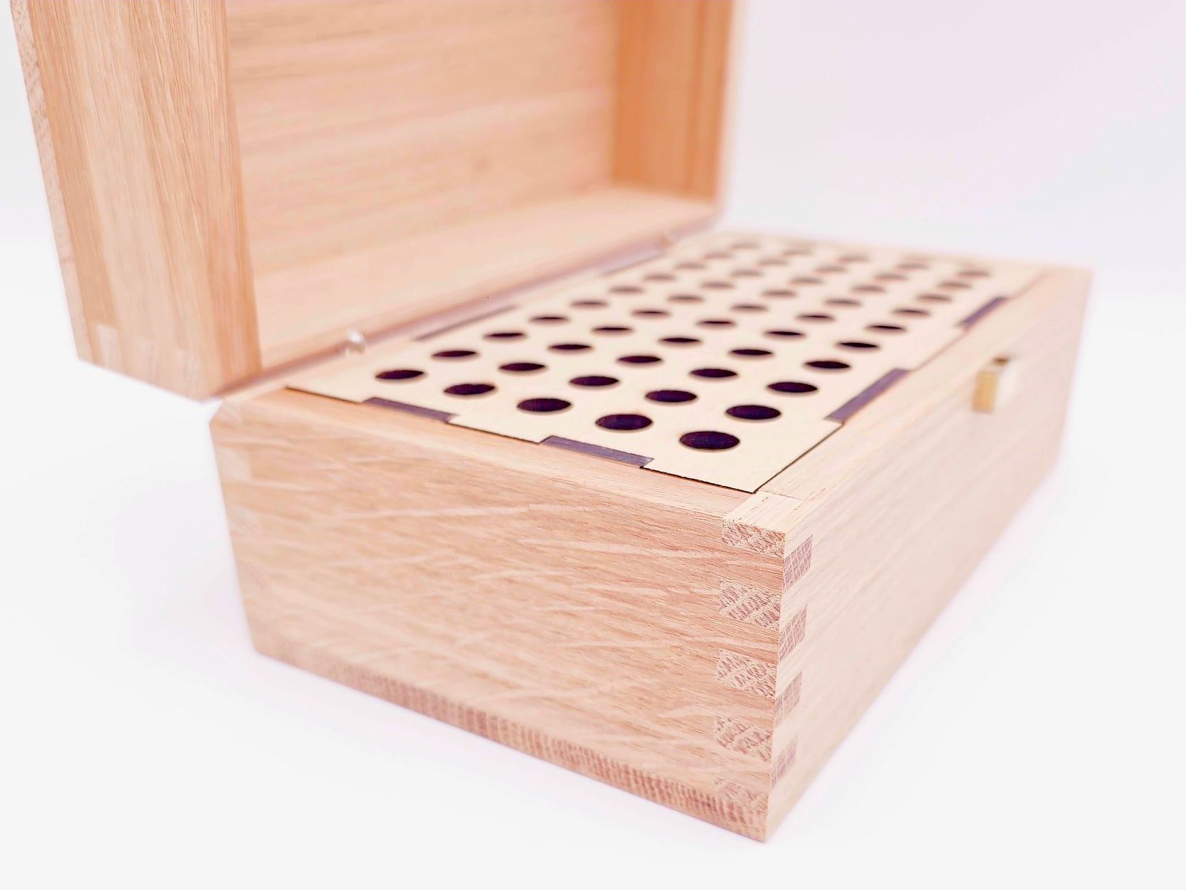 Auch die Munition kann man stilvoll aufbewahren. Kein Plastik oder Sperrholz, sondern ein hochwertiges Produkt fürs Auge.